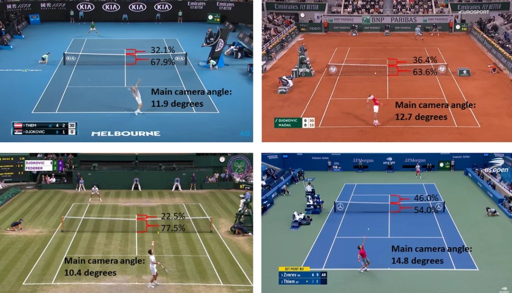 In fact, you can directly link the height of the camera angle with the viewing figures of each of the four grand slam finals: