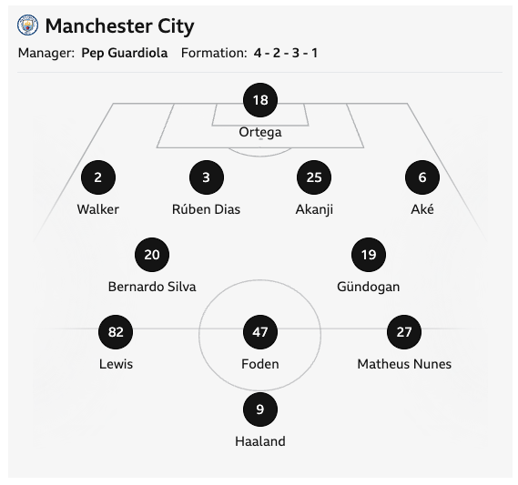 Although the graphic here shows a 4-2-3-1, it was much more of a 4-3-3, with Akanji stepping into midfield to make the 3-2-5 shape most teams now build up with.